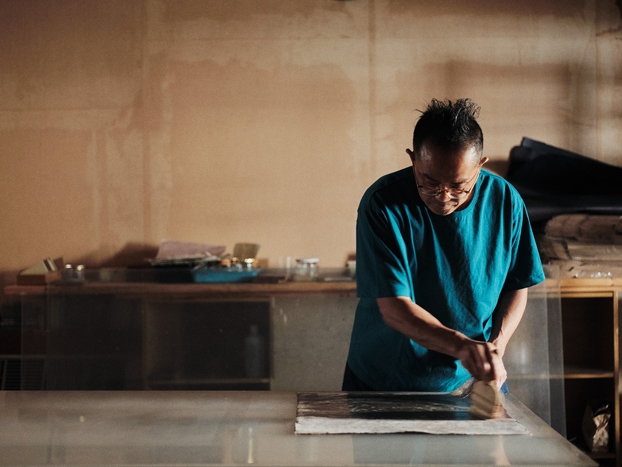きれいな水と植物から、さまざまの人の手を通して生まれる手すき和紙。 個性豊かな紙たちと対話して、素材の声に耳を傾け、 その良さを最大限に引き出すように、藍や墨、柿渋などで染めています。 そして、染めた和紙が暮らしの中で役に立つように いろいろなかたちに仕上げていきます。 長くお使いいただけるよう、見えないところに手をかけてていねいに。